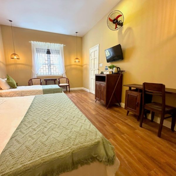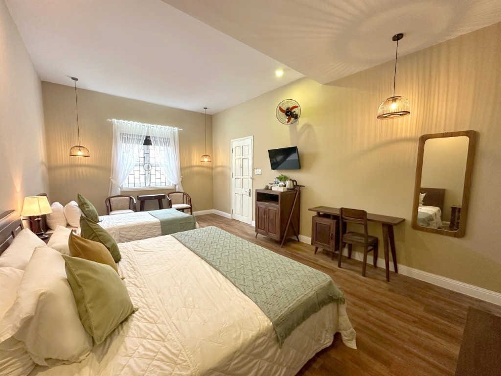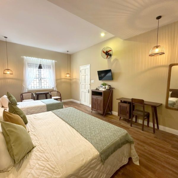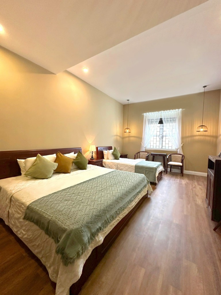 Giường: phòng gồm 1 giường lớn 2m & 1 giường đơn 1m